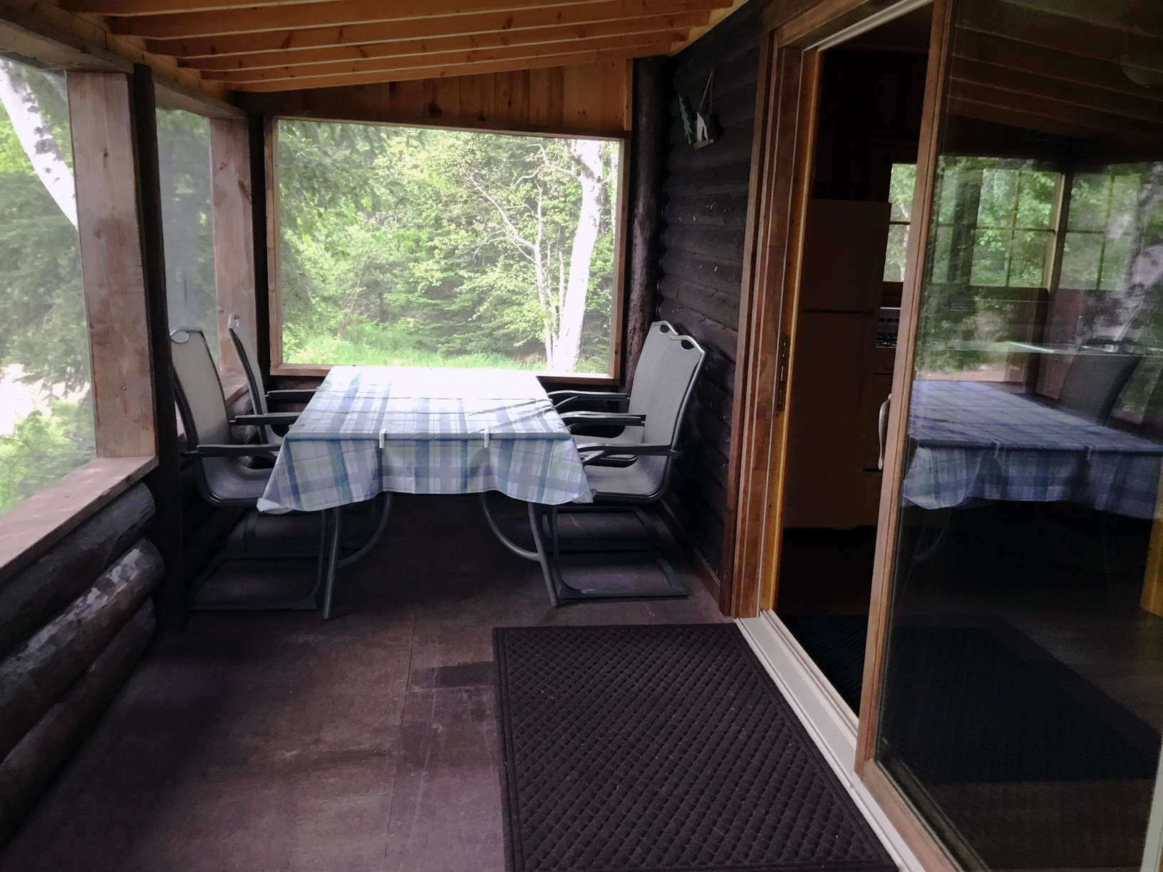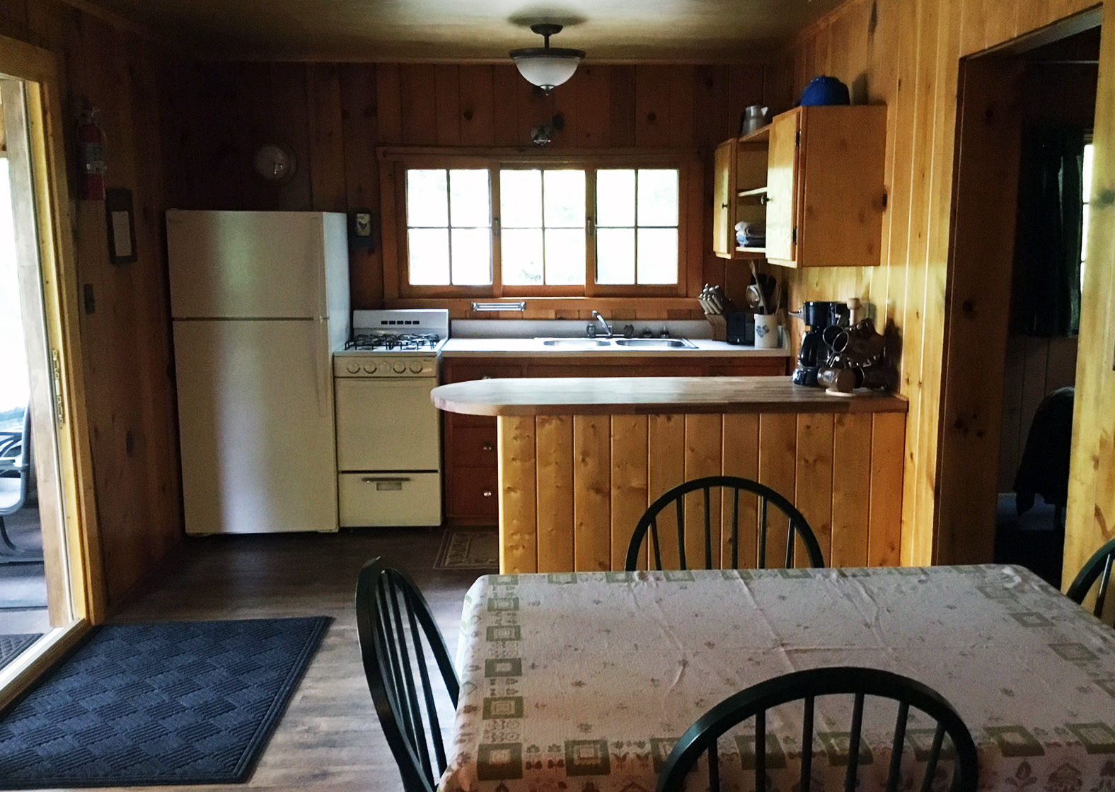 On the eastern part of the bay, Cabin Eight was built in the 1960’s and updated in 2018. Its knotty pine interior includes a combination kitchen-living room area with fireplace, full porch with beautiful view, and two bedrooms- one with a double bed and one with a twin plus bunks.