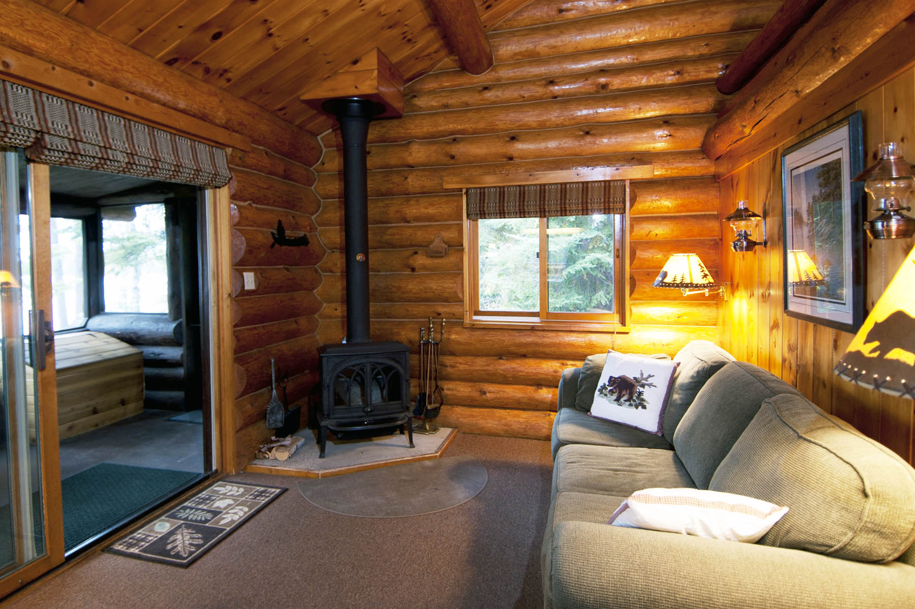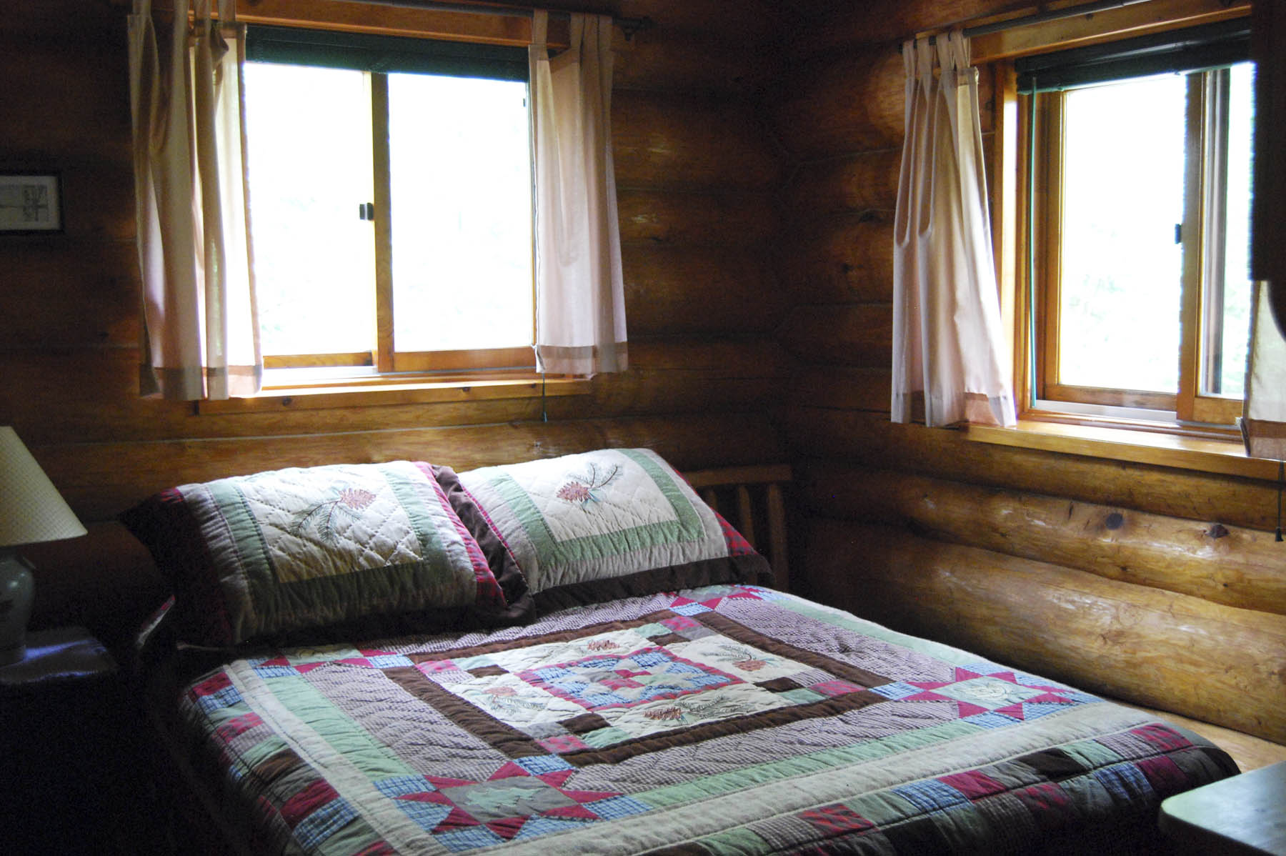 The most secluded log cabin at Wilderness Bay, Cabin Three was built in 1984 by local craftsmen using red pine logs and materials from the lodge property. A large screened porch with an 8’ patio door provides a great view looking westward across Snowbank Lake. Cabin Three features a fireplace and comfortable living room area, two bedrooms with double beds, and loft area for additional space.